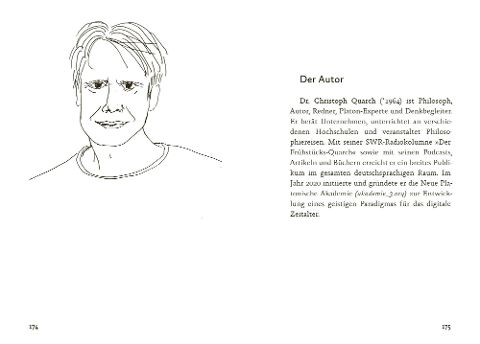 Dr. Christoph Quarch (*1964) ist Philosoph, Autor, Keynote-Speaker und Platon-Spezialist. Er berät Unternehmen, lehrt Ethik und Wirtschaftsphilosophie an drei Hochschulen und veranstaltet Philosophiereisen. Mit seiner SWR-Radiokolumne „Der Frühstücks-Quarch“ sowie mit seinen Podcasts, Artikeln und Büchern erreicht er ein breites Publikum. Im Jahr 2020 initiierte und gründete er die neue Platonische Akademie (akademie_3.org) zur Entwicklung eines geistigen Paradigmas für das digitale Zeitalter. Christoph Quarch lebt mit seiner Familie in Fulda. www.christophquarch.de