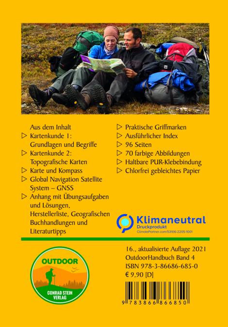 Zunächst werden Grundlagen und Begriffe der Kartenkunde und der Aufbau topografischer Karten erläutert. Dann werden Methoden dargestellt, wie man mit Karte, Kompass und GPS umgeht. Zur Übung sind einige Aufgaben (mit Lösungen) abgedruckt. Nützliche Adressen geografischer Buchhandlungen und Kompass- und GPS-Hersteller sowie Literaturtipps runden dieses Buch ab.