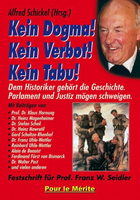 Anläßlich des 70. Geburtstages von Prof. Franz W. Seidler erscheint diese Festschrift. Der Jubilar hat sich als unermüdlicher Verfechter historischer Wahrheit und Klarheit national und international einen Namen gemacht. Besondere Verdienste hat er sich als Wortführer während der öffentlichen Debatten über angebliche Verbrechen der Wehrmacht und über die Rehabilitierung von Deserteuren der Wehrmacht erworben. Der Herausgeber dieses Werkes, der Leiter der Zeitgeschichtlichen Forschungsstelle Ingolstadt (ZFI), Dr. Alfred Schickel, hat für diese Festschrift die angesehensten Köpfe einer unbestechlichen Historikerschaft mit Beiträgen versammelt. Die Themen reichen von "Wie souverän ist Deutschland?" über "Waren die Deutschen willige Vollstrecker von Hitlers Judenpolitik?", "Wirtschaftliche Kriegsgründe 1919-1939", "Das Gespenst der Marneschlacht geistert vor Moskau" bis "Wie aus einem Massengrab ein deutsches Kriegsverbrechen wurde"; alle aber stehen sie in ihrem Mut und ihrer Wahrhaftigkeit unter dem Motto des Manifestes "Freiheit für die Geschichte" von 15 französischen Historikern, aus dem auch der Titel dieses Buches abgeleitet wurde.