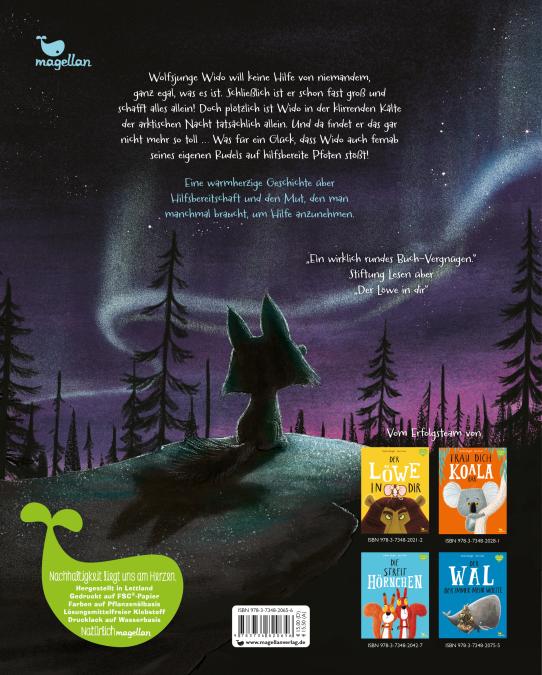 Ein winterliches Vorleseabenteuer für alle Fans von Der Löwe in dir. Wolfsjunge Wido will keine Hilfe von niemandem, ganz egal, was es ist. Schließlich ist er schon fast groß und schafft alles allein! Doch plötzlich ist der Welpe in der klirrenden Kälte der arktischen Nacht tatsächlich allein. Und da findet er das gar nicht mehr so toll. Was für ein Glück, dass Wido auch in der Fremde fernab von seinem eigenen Rudel auf hilfsbereite Pfoten stößt! Eine warmherzige Geschichte über Hilfsbereitschaft und den Mut, den man manchmal braucht, Hilfe anzunehmen. Das vierte Buch aus der erfolgreichen Bright/Field-Reihe. Alle Bücher können unabhängig voneinander vorgelesen werden.
