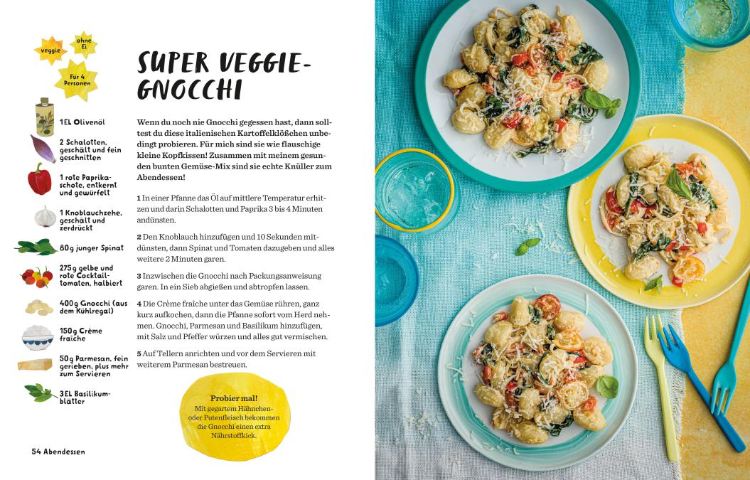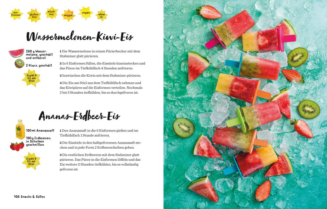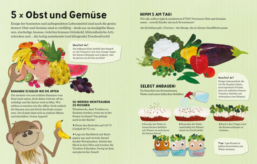 Einfache Rezepte, kindgerecht formulierte Schritt-für-Schritt-Anleitungen und illustrierte Zutatenlisten machen Kinder zu Helden am Herd. Tipps zum Variieren und Dekorieren beflügeln die Fantasie und ein bisschen Zählen und Rechnen kommt beim Abwiegen ganz nebenbei auch noch ins Spiel. Liebevoll illustrierte Sonderseiten entführen auf spielerische Weise in die Welt der gesunden und abwechslungsreichen Ernährung.