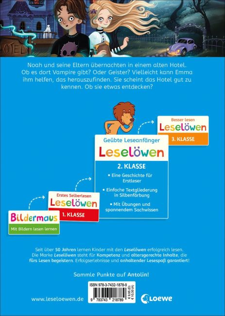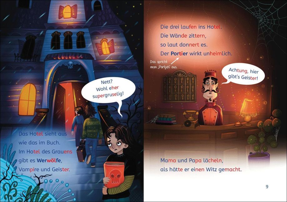 Noah liebt gruselige Geschichten. Und so findet er es sehr spannend, in dem alten Hotel zu übernachten. Es sieht aus, als könnte es aus einem seiner Bücher sein. Ob es dort Vampire und Werwölfe gibt? Oder vielleicht Geister? Vielleicht kann ihm Emma helfen, das herauszufinden. Sie wohnt auch in dem Hotel und scheint sich gut auszukennen. Ob sie etwas entdecken? Schenken Sie Ihrem Kind das bewährte Erfolgskonzept zum Lesenlernen.