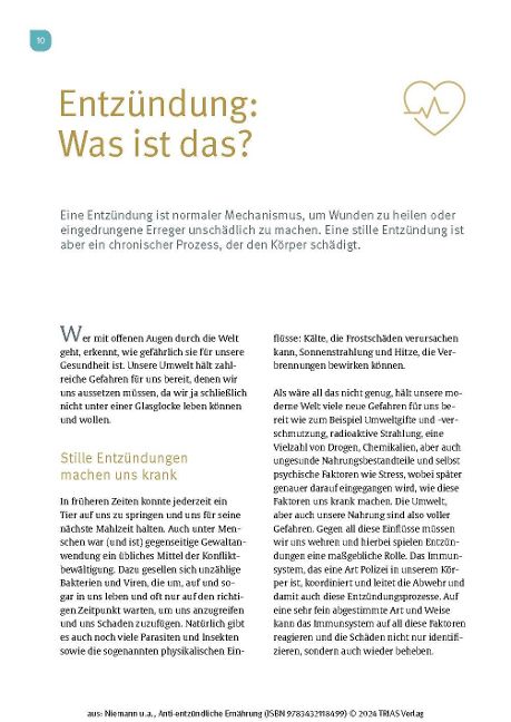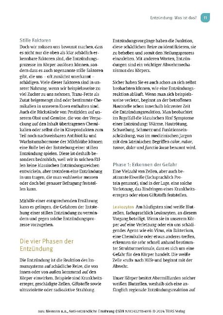 - Die Zutaten : Welche Lebensmittel löschen Entzündungen am besten? Was macht heimische Beeren und Gemüsesorten, Gewürze wie Kurkuma und Ingwer, Kräuter, Öle, Nüsse und Fisch so gesund? Mit viel praktischem Küchenwissen über Sorten, Lagerung und Verarbeitung.