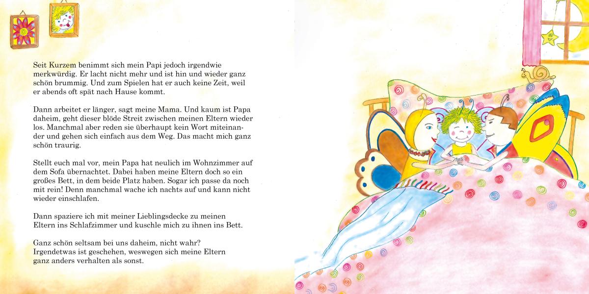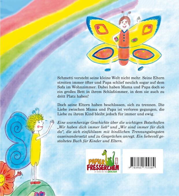 Schmetti versteht seine kleine Welt nicht mehr. Seine Eltern streiten immer öfter und Papa schlief neulich sogar auf dem Sofa im Wohnzimmer. Dabei haben Mama und Papa doch so ein großes Bett in ihrem Schlafzimmer, in dem sie auch zu dritt Platz haben. Seine Eltern haben beschlossen, sich zu trennen, aber nicht, weil Schmetti unartig war oder sein Zimmer nicht aufgeräumt hat. Die Liebe zwischen Mama und Papa ist verloren gegangen, die Liebe zu ihrem Kind bleibt jedoch für immer und ewig. Eine warmherzige Geschichte über die wichtigen Botschaften "Wir haben dich immer lieb" und "Wir sind immer für dich da", die sich einfühlsam mit kindlichen Trennungsängsten auseinandersetzt und zu Gesprächen anregt. Ein liebevoll gestaltetes Buch für Kinder und Eltern.