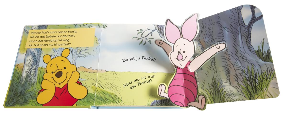 Wo ist der Honig? Süßes Winnie Puuh Pop-up Buch mit großen Klappen ¿ Interaktiv: Pappbilderbuch mit Pop-ups und 5 großen Klappen für Kinder ab 2 Jahren ¿ Hier kommt Tigger! Pop-ups hinter den Klappen sorgen für Überraschungsmomente ¿ Wo ist nur der Honig? Winnie Puuh und seine Freunde auf gemeinsamer Suche ¿ Für kleine Winnie-Puuh-Fans: erste Geschichte mit fröhlichen Reimen Die große Honigsuche Winnie Puuh braucht Hilfe. Sein Honigtopf ist verschwunden! Das lustige Pop-up-Buch bietet großen Suchspaß für die Allerkleinsten: Spielerisch können Kinder ab 2 Jahren dem liebenswerten Bären helfen, seinen Honigtopf wiederzufinden. Hinter 5 stabilen Klappen warten Pop-ups mit Winnie Puuhs Freunden, die natürlich auch mitsuchen wollen. Ganz nebenbei wird bei der Suche spielerisch die Feinmotorik der kleinen Winnie Puuh Fans gefördert. Mit seinen lustigen Reimen ist das interaktive Buch ein tolles Geschenk zum 2. Geburtstag. Die Welt von Winnie Puuh entdecken: Ein lustiges Pop-up-Buch mit großen Klappen und fröhlichen Reimen für Kinder ab 2 Jahren