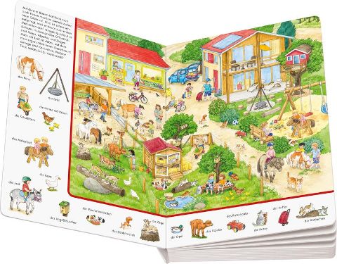 Bilderbuchvielfalt und jede Menge Suchspaß! Auf elf abwechslungsreichen Wimmelbuchseiten können Kinder ab 2 Jahren über 170 "Sachen suchen". Wichtige Kinderthemen wie der Bauernhof, die Stadt, der Kindergarten, die heimischen Tiere im Wald und die wilden Tiere im Zoo, große Baustellen in der Stadt und vieles mehr laden dazu ein, sich intensiv mit den Bildern zu beschäftigen. Das macht Spaß und hilft beim Sprechen lernen. Ein Lieblingsbuch mit großer Themenvielfalt für die ganze Familie.