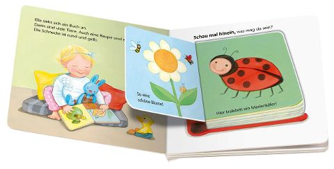 In diesem ersten Klappenbuch gibt es viel zu entdecken. Was entdeckt man wohl im Feuerwehrauto? Und wer versteckt sich im Spielhaus? Überall warten kleine Überraschungen. Die Klappen sind extragroß und aus sehr stabilem Material. So können auch schon Babys ab einem Jahr die Klappen kinderleicht öffnen und schließen, ohne dass diese kaputt gehen. Das Öffnen der Klappen macht allen Kindern Spaß. Und ganz nebenbei fördert es spielerisch die Feinmotorik der Kleinen.