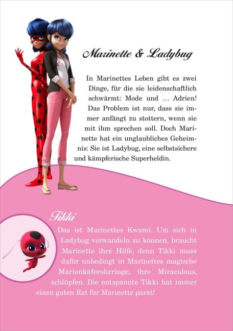 Eigentlich heißt sie ja Marinette und ist eine ganz normale Schülerin. Aber bei Gefahr verwandelt sich Marinette im Nu in die maskierte Superheldin Ladybug. Etwa wenn der Superschurke Hawk Moth wieder seine dunklen Gehilfen losschickt, um die Miraculous zu rauben, die mächtigsten Gegenstände der Welt. Zusammen mit Cat Noir sorgt Ladybug dafür, dass das Böse vertrieben wird. Stets dabei sind der kleine Kwami Tikki und ihr magisches Jo-Jo. Über das Buch: Miraculous - Eine fast perfekte Täuschung: Ladybug deckt Lügen auf! Lila möchte Adrien beeindrucken und behauptet, dass sie mit Ladybug befreundet sei. Marinette kommt dahinter und ist stocksauer. Als Ladybug stellt sie Lila zur Rede und entlarvt sie als Lügnerin. Hawk Moth nutzt Lilas Ärger, um sie in Volpina, die Meisterin der Illusion, zu verwandeln. Doch plötzlich gibt es nicht nur eine Volpina, sondern Hunderte! Wird Ladybug die echte Superschurkin enttarnen und Paris erneut retten? Miraculous - Großer Auftritt für Ladybug: Nadia Chamack ist die bekannteste TV-Moderatorin von ganz Paris! Und sie hat Ladybug und Cat Noir zu einem Exklusivinterview in ihre Show eingeladen. Sie will unbedingt herausfinden, ob die beiden ein Paar sind. Denn das sorgt für gute Einschaltquoten! Ladybug und Cat Noir verlassen entnervt die Live-Sendung. Doch so wird die enttäuschte Nadia zum perfekten Ziel für den Bösewicht Hawk Moth ... Die spannenden Bücher zur Original-TV-Serie sind ein Muss für alle Ladybug-Fans!