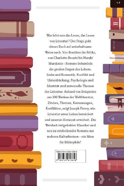 Was lehrt uns das Lesen, das Lesen von Literatur? Der Frage geht dieses Buch auf unterhaltsame Weise nach. Von Brasilien bis Afrika, von Charlotte Brontë bis Haruki Murakami - Romane behandeln die großen Fragen des Lebens. Liebe und Romantik, Konflikt und Unterdrückung, Psychologie und Identität sind universelle Themen der Literatur. Anhand von Beispielen aus über 100 Werken der Weltliteratur, Zitaten, Themen, Kernaussagen, Konflikten, zeigt Joseph Piercy, wie Literatur unser Leben bereichert und unseren Horizont erweitert. Die Weisheit vielgeliebter Klassiker und neu zu entdeckender Romane aus anderen Kulturkreisen - ein Muss für Bibliophile!