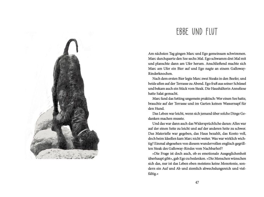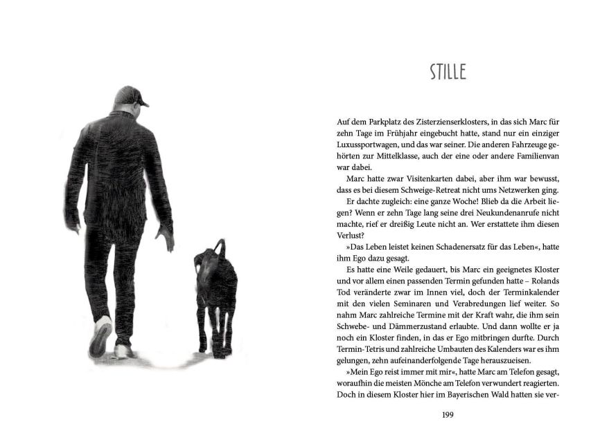 »Es heißt, im Moment des Todes zieht das ganze Leben an uns vorbei«, sagte Ego. »Das habe ich auch schon gehört«, antwortete Marc. »Nur zieht mein Leben seit fünfzig Jahren an mir vorbei.« Immer wieder spricht der erfolgreiche Unternehmer Marc Lambert mit seinem Hund. Königspudel Ego ist ein ganz besonderer Vierbeiner. Seit Marc denken kann, ist Ego an seiner Seite. Er kennt alle Aufs und Abs in Marcs Leben und ist ein idealer Ratgeber. Jetzt, da Marc auf die sechzig zugeht, stellen sich ihm die großen Fragen des Lebens. Ego hilft ihm, die Antworten zu finden und sein Leben neu zu gestalten: vom Streben nach äußerem Reichtum zu innerem Frieden. Mal auf sanften Pfoten, mal mit großer Schnauze - aber immer mit viel Geduld für die Widersprüchlichkeiten dieser Menschen, die nicht kapieren wollen, dass die Sache mit dem Glück ganz einfach ist.