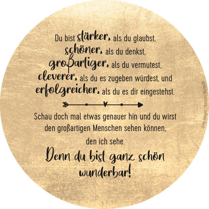 Die Kartenbox aus Metall enthält 25 runde Karten mit lauter Liebenswürdigkeiten und zauberhaften Sprüchen. Einige der Komplimentekärtchen lassen sich auch noch durch wenige Worte personalisieren. Schenke einem Herzensmenschen mit diesem liebevollen Kartenset die Wertschätzung, die er oder sie verdient.