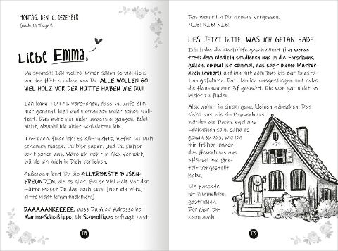Emma und Lore sind allerbeste Freundinnen und verbringen jede freie Minute zusammen. Doch dann zieht Emma von Kiel nach Rosenheim um, und Lore baut so großen Mist, dass sie von ihrer Mutter bis Weihnachten striktes Computer- und Handyverbot bekommt. Absolute Katastrophe! Da bleibt den beiden Freundinnen nur noch eines übrig, um sich auszutauschen: Briefe zu schreiben! Ausgerechnet! Briefe über Schmetterlinge im Bauch, Liebeszauber, chaotische Patchworkfamilien, interessante Jungs und erste Partys: Warum küsst Lores Schwarm Alex zuerst eine andere und taucht von einem Tag auf den nächsten nicht mehr in der Schule auf? Mit wem soll Emma ihren ersten BH kaufen gehen? Wie verliebt man sich? Und was macht man, wenn man sich wieder entlieben möchte? Und warum joggt Emmas Vater plötzlich jeden Morgen und riecht so, als habe er eine Flasche Rasierwasser über sich ausgeleert? Gemeinsam versuchen die Mädchen, ihr chaotisch-lustiges Teenagerleben zu sortieren. Dabei ist beiden immer klar: Ihre Freundin ist echt die Beste!