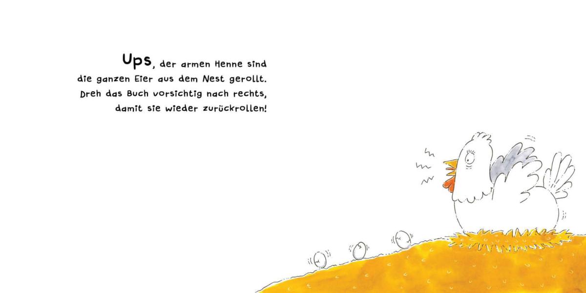 Dieses Bilderbuch hat es in sich. Denn man kann mit ihm viel mehr machen, als es nur zu lesen oder seine lustigen bunten Bilder zu betrachten. Hier können Kinder ab 2 Jahren selbst aktiv werden: Sie dürfen das Buch schütteln, schaukeln, rubbeln, darauf herumklopfen oder es auf den Kopf stellen, je nachdem, was die kleine Geschichte verlangt. Da gilt es zum Beispiel, den Apfelbaum zu schütteln, Kitzelmonster Kalle durchzukitzeln oder an die Tür eines geheimnisvollen Schlosses zu klopfen, um zu sehen, was auf der nächsten Seite passiert. Ein Buch voller Überraschungen für jede Menge Spiel, Spaß und Spannung.