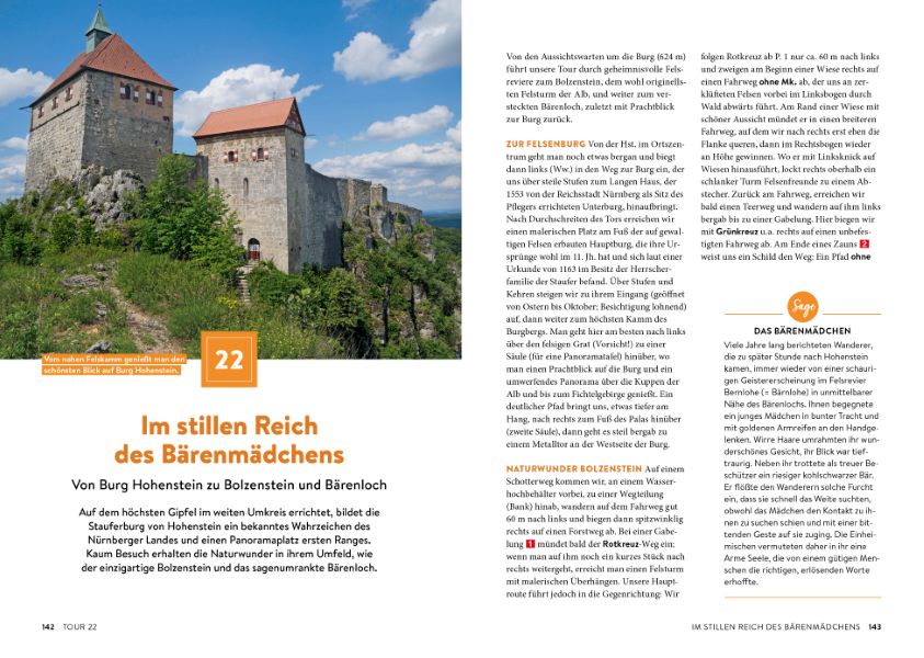 Lassen Sie sich zu verborgenen Orten und geheimnisvollen Plätzen früherer Kulturen entführen und entdecken Sie magische Orte, geheime und vergessene Pfade auf ihren Wanderrouten! Dieses Wanderbuch führt Sie zu verborgenen Orten der Frankenalb und Hersbrucker Schweiz, die eine besondere Aura umgibt: zu Höhlen und Felsdächern, die Steinzeitjägern Schutz boten, zu Kultplätzen früher Kulturen, zu schaurigen Schachthöhlen, an denen in der Vorzeit rätselhafte Rituale stattfanden, und zu Naturwundern, um die sich teils schaudererregende, teils berührende Sagen ranken - darunter über 130 magische Orte, die nie zuvor in einem Wanderführer behandelt wurden.