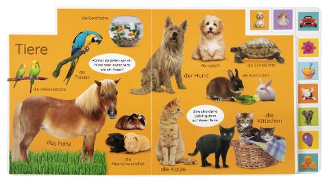 Mit dem stabilen Register oben und an der Seite sehen die Kinder alle Themen in bunten Bildern auf einen Blick und können so selbstständig entscheiden, welche Lieblingsseite sie aufschlagen möchten. Dank extrem stabiler Verarbeitung haben Kinderhände hier alles im Griff und ihre Feinmotorik wird dadurch gleichzeitig gefördert.