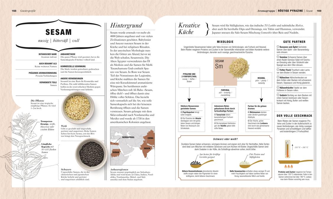 • 65 Rezepte für Gewürzmischungen und Food-Pairing-Gerichte wie z.B. Sesameis mit Kardamom.
