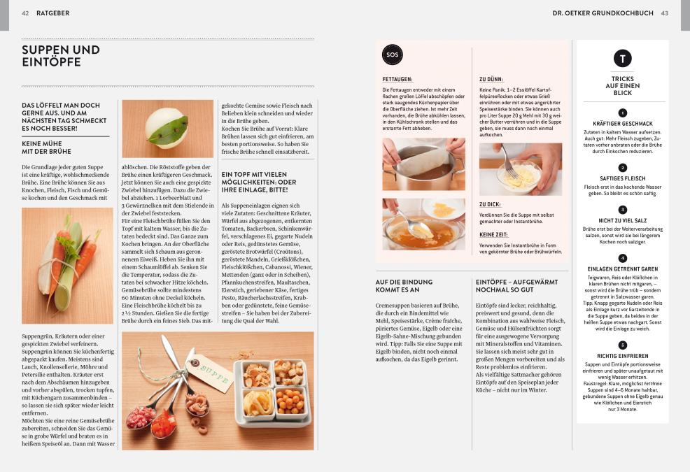 Mit der überarbeiteten Neuausgabe dieses Klassikers des Dr. Oetker Verlages kann wirklich jeder kochen lernen. Von Snacks, Vorspeisen über Hauptgerichte bis hin zu Desserts – hier finden sich alle Rezepte, die man kennen sollte, die notwendige Küchenpraxis Schritt für Schritt und ein umfangreiches Glossar mit allen relevanten Begriffen rund ums Kochen. Seit 30 Jahren ist das Grundkochbuch ein Dauer-Bestseller und darf in keinem Haushalt fehlen. Besonders in der heutigen Zeit, in der viele Menschen das Kochen nicht mehr von Haus aus lernen, ist das Buch unverzichtbar. Das betrifft sowohl alle, die Hotel Mama verlassen, als auch Anfänger am Herd, die sich selbst versorgen wollen oder müssen. Ideal für Schüler, Studenten, Auszubildende und Menschen, die einen neuen Haushalt gründen wollen. Schritt für Schritt, mithilfe von verständlichen Texten und Bildern, zaubern selbst Anfänger am Herd deftigen Zwiebelkuchen, cremige Spargelsuppe, leckeren Schweinebraten in Kräuterkruste und himmlisches Tiramisu. Blanchieren, Pochieren, Sous-vide und Co. bleiben so keine Fremdworte mehr, sondern werden mit den Rezepten ganz einfach und praxisnah erlernt. Damit können Neulinge sofort loslegen und es schmeckt garantiert. Denn kochen kann jeder!