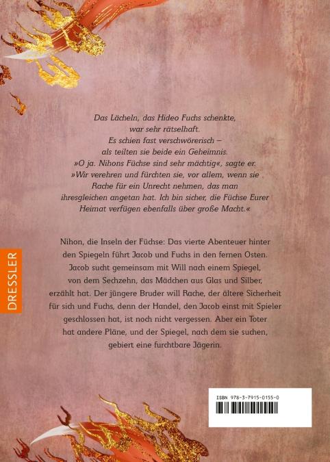 Das vierte Abenteuer hinter den Spiegeln führt Jacob und Fuchs in den fernen Osten. Jacob sucht gemeinsam mit seinem Bruder Will nach einem Spiegel, von dem Sechzehn, das Mädchen aus Glas und Silber, erzählt hat.Will sinnt nach Rache, Jacob sucht nach Sicherheit für sich und Fuchs, denn der Handel, den er einst mit Spieler geschlossen hat, ist noch nicht vergessen. Aber ein Toter hat andere Pläne, und der Spiegel, nach dem sie suchen, gebiert eine furchtbare Jägerin.
