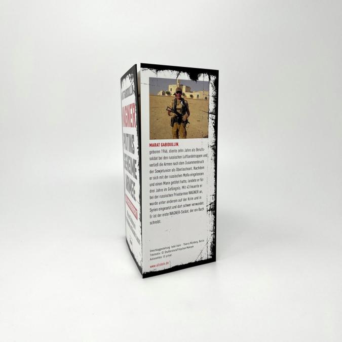 Marat Gabidullin, geboren 1966, diente zehn Jahre als Berufssoldat bei den russischen Luftlandetruppen und verließ die Armee nach dem Zusammenbruch der Sowjetunion als Oberleutnant. Nachdem er sich mit der russischen Mafia eingelassen und einen Mann getötet hatte, landete er für drei Jahre im Gefängnis. 2015 heuerte er bei der russischen Privatarmee WAGNER an, wurde auf der Krim und in Syrien eingesetzt und dort schwer verwundet. Er ist der erste WAGNER-Soldat, der ein Buch schreibt.