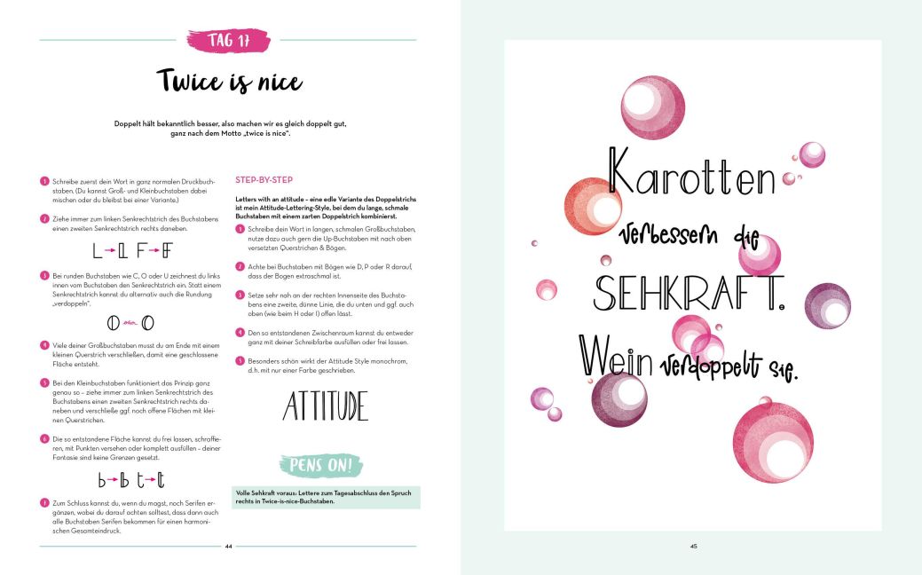 30 Tage - 30 Lektionen. Mit einsteigerfreundlichen und wissenswerten Grundlagen zu verschiedenen Schreibutensilien, Buchstabenarten, Hintergründen, Schattierungen und vielem mehr gibt der Workshop auch Anfänger*innen alles an die Hand, was sie für den perfekten Start benötigen. Mit über 50 verschiedenen Alphabeten, vielen tollen Sprüchen und weiterem Zusatzmaterial kann man das Gelernte direkt in eigenen Projekten umsetzen. DIeses Bundle beinhaltet: 30-Tage-Workshop mit vielen Tipps, Tricks, Grundlagen, Daylie-Challenges und mehr Über 50 Alphabete, Sprüche und Projektideen Umfangreiches Zusatzmaterial: Vorlagenposter, Mix-Techniken, Letter-Patterns und Designs