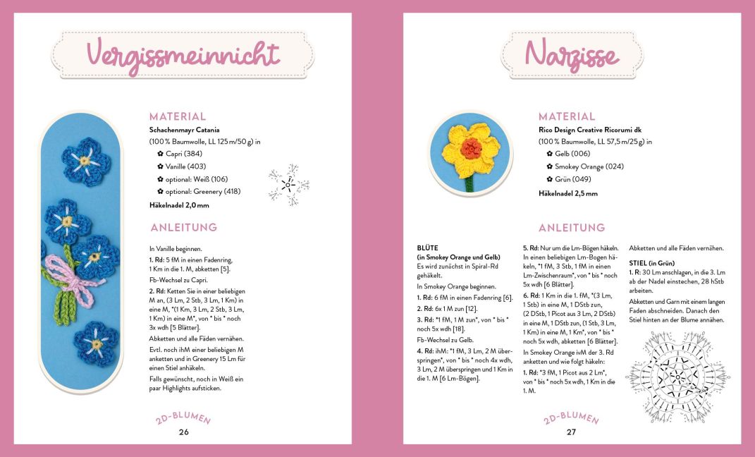 Bringe dein Garn zum Blühen! Die Anleitungen in diese Buch sprühen vor Flowerpower:Häkel dich durch die Anleitungen für zweidimensionale Blüten, Blätter und mehr, die du als Applikationen verwenden kannst, und wunderschöne dreidimensionale Blumen, aus denen du ein ganzes Bouquet zusammenstellenkannst. Mit ausführlichem Grundlagenteil mit vielen Illustrationen und Videos zu jeder Technik sowie Häkelschriften zu allen zweidimensionalen Anleitungen.- Dekorieren, applizieren, verschenken: 100 originalgetreue Blumen als zweidimensionale Blüten und dreidimensionale Blumen zum Binden von Bouquets häkeln- Anleitungen zu Blüten, Blättern und mehr: Kirschblüte, Ahornblatt, Weihnachtsstern, Primel, Schneeglöckchen, Weidenkätzchen und viele weitere- Mit illustriertem Grundlagenteil, QR-Codes zu Häkelvideos undHäkelschriften in den Anleitungen Häkle zauberhafte Blüten und nähe sie als Applikation zum Beispiel auf einen Pullover oder deine Strickjacke! Oder beschenke einen geliebten Menschen mit einem Strauß aus ihren/seinen Lieblingsblumen. Ein selbst gehäkelter Blumenstrauß macht sich wunderschön in einer Blumenvase, wird garantiert nie verwelken und ist ein persönliches Geschenk, über das sich jede*r Beschenkte freuen wird!