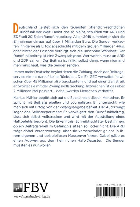 Fast fünf Jahre Rundfunkbeitrag, Zeit für eine erschütternde Bilanz: ARD und ZDF verkaufen ihn als Erfolgsgeschichte mit dem großen Milliarden-Plus. Jeder, der wohnt, muss ihre Fernseh-Zwangsabgabe zahlen - ein Leben lang, ohne Wenn und Aber. Ganz Deutschland ist gefangen in Deutschlands größtem Zwangsverein mit 45 Millionen »Beitragskonten«. So nennt der Beitragsservice, die Inkassobehörde von ARD und ZDF, seine Zwangskunden.