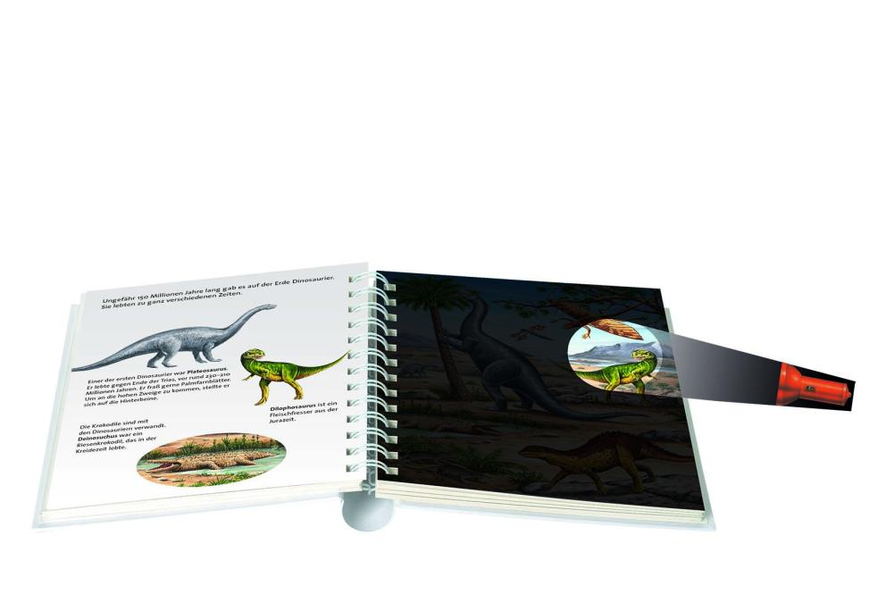 Die gigantischen Urzeitriesen waren spannende Wesen: mit langen Schwänzen, dornenbewehrt, mit bis zu acht Meter langen Hälsen, riesigen Zähnen oder Fledermausschwingen. Erforsche die Welt der Dinosaurier mit deiner magischen Taschenlampe!