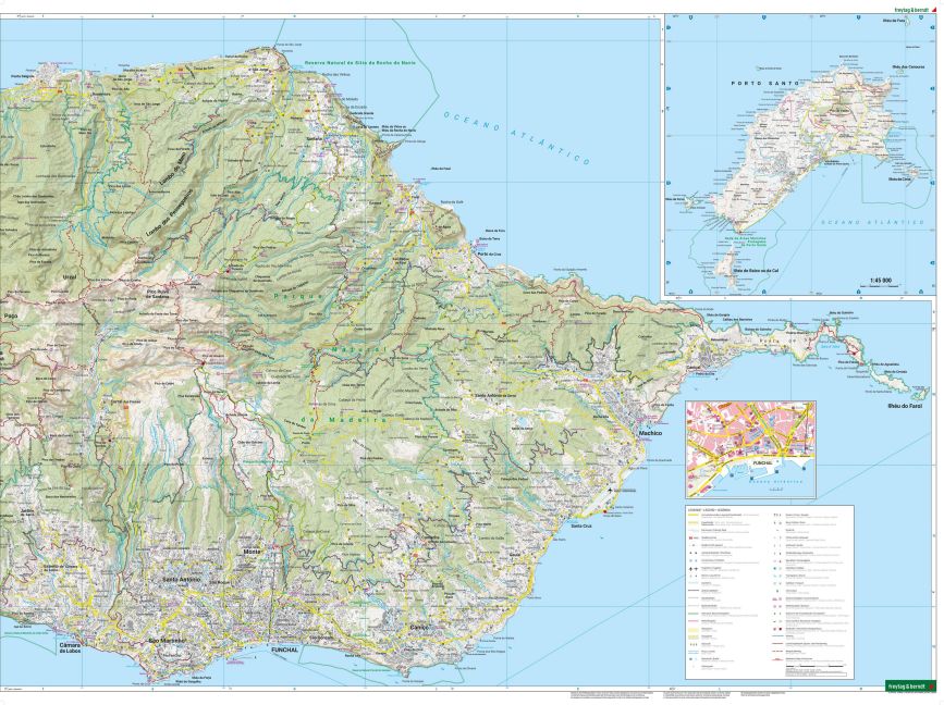 Freizeitinformationen, Wander- und Weitwanderwege, Ortsregister mit Postleitzahlen, GPS-tauglich, Strände, doppelseitig, Cityplan Funchal, inkl. Karte Porto Santo 1:40.000;