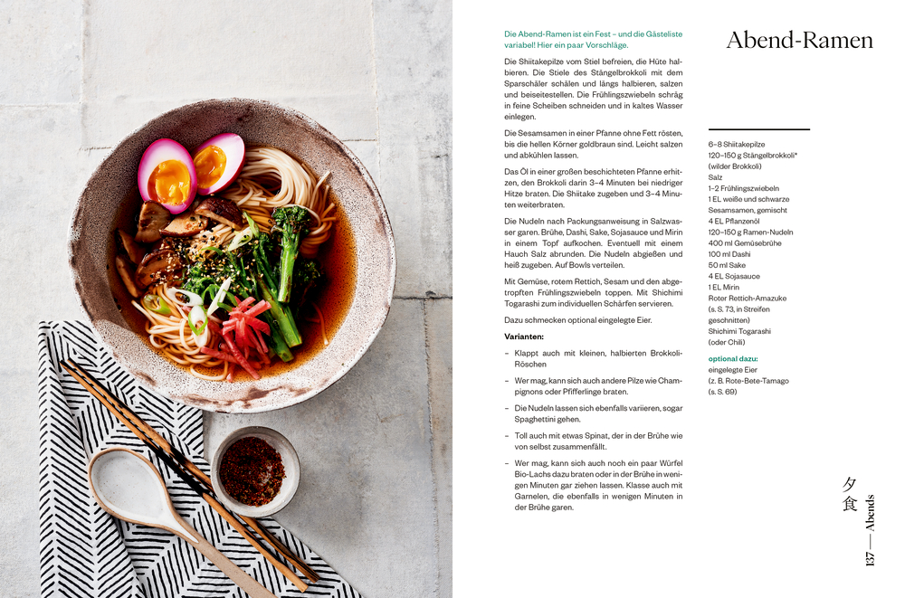 Genussvolle, abwechslungsreiche Rezepte, bei denen man auf nichts verzichten muss und die dennoch gesund sind? Die japanische Küche macht es möglich! Beginne deinen Tag mit einem vitalisierenden Morning Tofu, gönne dir zum Lunch das japanische Supersandwich Wanpaku und runde den Abend mit einer aromatischen Chicken-Miso-Pasta ab. Eine große Auswahl an gesunden japanischen Rezepten zeigen Ihnen Japan-Experte Stevan Paul und Ökotrophologin Sarah Schocke. Erleben Sie, wie die traditionelle japanische Küche mit Leichtigkeit einen gesunden, ausgewogenen Ernährungsalltag ermöglicht. Denn die in japanischen Gerichten seit Jahrhundert gelebte Praxis, Mahlzeiten mit weniger Fleisch und mehr Gemüse zuzubereiten, wird auch hierzulande immer beliebter. Mit vielen Gesundheits-Tipps und Tricks und den vielfältigen japanischen Rezepten vom Koch und Japan- Experten Stevan Paul entstehen großartige Gerichte – leicht und ausgewogen für jeden Tag!