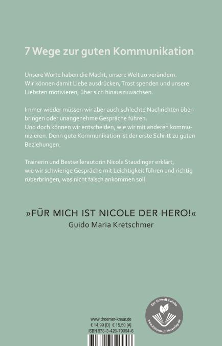 Anhand von 7 Wegen zu guter Kommunikation beschreibt Nicole Staudinger in gewohnt unterhaltsamer Weise und anhand anschaulicher Alltagssituationen, worauf es bei der guten Kommunikation ankommt. Und wie viel wir durch sie erreichen können.