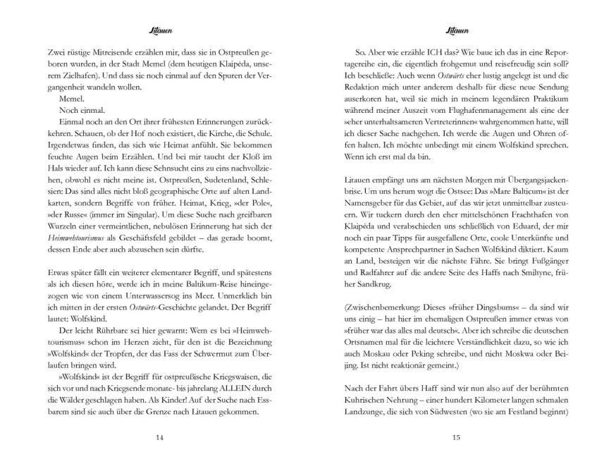 In ihren neuen Reise-Erzählungen führt uns Julia Finkernagel ins Baltikum nach Lettland, Litauen und Estland und trifft dort auf "Heimwehtourismus", die Sahara des Nordens und einen launigen Präsidenten. Wir werden Zeugen eines Schreckmoments, wenn an einem lettischen Bahnhof das Drehmaterial zurück bleibt und erfahren, dass sich die Männer im Team so gar nicht als echte Kerle entpuppen, wenn man nach der Sauna durch eine dünne Eisschicht in ein Fass springen muss. Außerdem findet Julia auf ihrer Reise heraus, dass in Montenegro Nichtraucher auch mal draußen bleiben müssen und erklärt, wie man am Baikalsee einen Drink "auf Eis" nimmt.