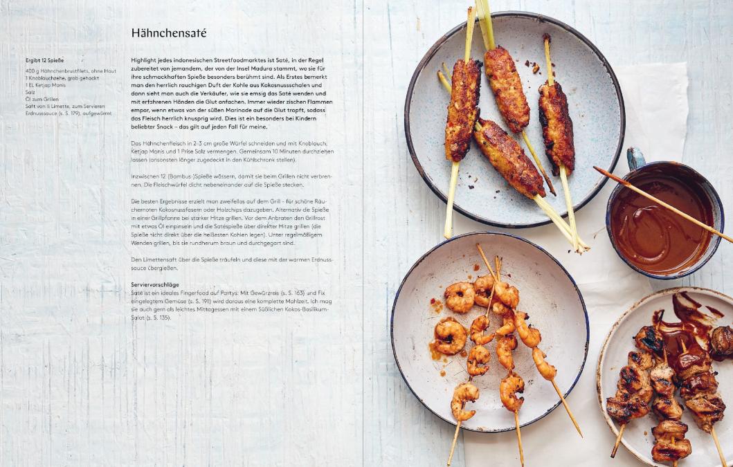 Indonesisch kochen: einfach, authentisch und voller Genuss Steile Reisterrassen, grüner Regenwald, feuerspeiende Vulkane: Indonesien ist ein Paradies für Reisende, und dieses Kochbuch entführt Sie in die indonesische Küche, die genauso aufregend und abwechslungsreich ist, wie das Land selbst. In den Straßen der Städte wird Sambal aus scharfem Chili zu Nudelsuppen gereicht, Erdnusssauce gibt gegrillten Saté-Spießen eine süße Note, der Duft von Curry, Ingwer, Zitronengras und Limette zieht durch die Luft. Eleanor Ford stellt in Fire Islands die ganze Bandbreite der Küche Indonesiens vor – von der raffinierten Kochkunst Javas, dem würzigen Herz Sumatras über die Exotik Balis bis hin zu Street-Food in Jakarta. Mit diesem Kochbuch holen Sie sich das Feuer der indonesischen Küche auch in Ihr Zuhause! Das Indonesien-Kochbuch: ein Feuerwerk der Aromen Aus den vielen Rezepten fällt es sicherlich schwer ein Lieblingsgericht auszuwählen. Neben Snacks und Street-Food wie Saté-Spießen oder Frittierten Tofubällchen dürfen Rezepte für aromatische Currys und würziges Schmorfleisch nicht fehlen. Zu den traditionellen Gerichten gehören auch gegrillter Fisch und Meerestiere, geschmortes Hähnchen oder gebackener Tempeh. Auch Gemüse-Rezepte finden Sie in diesem Kochbuch, beispielsweise Mungbohnensprossen aus dem Wok, Wasserspinat mit geröstetem Tomatensambal oder blanchiertes grünes Gemüse mit Gado-Gado. Abgerundet werden die indonesischen Gerichte durch den perfekten Reis, aromatische Saucen und erfrischende Getränke. Ein wunderbar exotisches Indonesien-Kochbuch mit traumhaften Bildern von Land und Leuten!