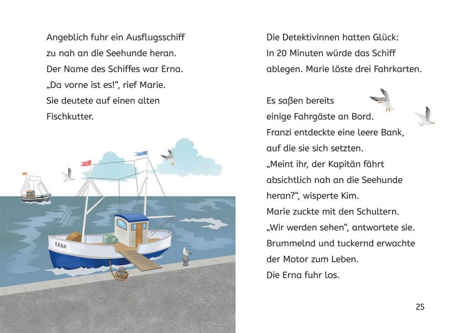 Der ist aber niedlich! Kim, Franzi und Marie finden bei einer Wattwanderung einen verlassenen Heuler. Sofort bringen sie den kleinen Seehund in die Auffangstation. Wie werden die Tiere versorgt? Wie leben Seehunde? Die Detektivinnen sind neugierig und wollen mehr erfahren. Ungewöhnlich viele Heuler wurden wohl in der letzten Zeit hier abgegeben. Das ist doch seltsam. Die drei !!! haben einen Fall! Gut lesen können mit einfachen Sätzen, vielen Bildern und einem Rätsel zur Verständniskontrolle. In acht Kapiteln ein Abenteuer erleben und mehr über die Nordsee erfahren. Die Geschichte ist sachlich geprüft von der Seehundstation Norddeich.