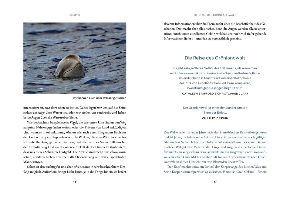 Als Säugetiere, die ihr gesamtes Leben im Meer verbringen, sind Wale und Delfine uns ähnlicher, als vielen bewusst ist. Der leidenschaftliche Walforscher und Meeresschützer Fabian Ritter wagt mit seinem Buch einen Perspektivwechsel, der uns die faszinierenden Meeressäuger ¿ gestützt auf neueste wissenschaftliche Erkenntnisse ¿ so nahe bringt wie nie zuvor: Erzählt aus ihrer Sicht, erfahren wir, wie Wale und Delfine ihre Mitwelt wahrnehmen, welche Bedeutung Licht und Schall haben, wie sie kommunizieren, spielen, lieben, Sex haben, Freude und Trauer zeigen. Zu welchen geistigen Leistungen sie fähig sind, wie sie in Gemeinschaften Wissen weitergeben und Kultur entwickeln. Auch wie sie auf uns Menschen reagieren. Wir tauchen ein in eine unglaublich reiche Welt, die wir gewollt oder ungewollt bedrohen. Mit der faszinierenden Lebensgeschichte eines Grönlandwals, der 1799 geboren wurde und bis heute lebt. Mit zahlreichen Fotografien des Autors.