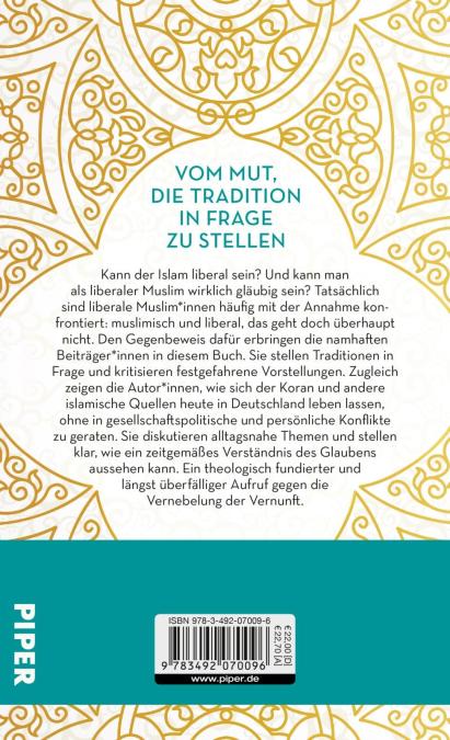Vom Mut, die Tradition in Frage zu stellen Kann der Islam liberal sein? Und kann man als liberaler Muslim wirklich gläubig sein? Tatsächlich sind liberale Muslim*innen häufig mit der Annahme konfrontiert: muslimisch und liberal, das geht doch überhaupt nicht. Den Gegenbeweis dafür erbringen die namhaften Beiträger*innen in diesem Buch. Sie stellen Traditionen in Frage und kritisieren festgefahrene Vorstellungen. Zugleich zeigen die Autor*innen, wie sich der Koran und andere islamische Quellen heute in Deutschland leben lassen, ohne in gesellschaftspolitische und persönliche Konflikte zu geraten. Sie diskutieren alltagsnahe Themen und stellen klar, wie ein zeitgemäßes Verständnis des Glaubens aussehen kann. Ein theologisch fundierter und längst überfälliger Aufruf gegen die Vernebelung der Vernunft.