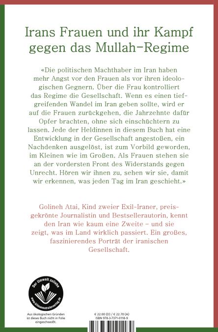 Golineh Atai war fünf Jahre alt, als sie mit ihren Eltern den Iran verließ – aber das Land und seine Entwicklung haben sie immer beschäftigt; Iran ist ihr Herzensthema. Wie der Gottesstaat der Mullahs seit mehr als vierzig Jahren das Land im Griff hält und jede demokratische Regung erstickt, zeigt sie in ihrem Buch, das den Iran auf ganz besondere Weise porträtiert: aus dem Blickwinkel von neun Frauen. Dabei erzählt Atai, wie aus der Tochter eines Geistlichen, die um ihr Recht auf Schulbildung kämpfen musste, eine international bekannte Aktivistin wurde. Oder wie eine junge, regierungsnahe Angestellte mitten in Teheran ihr Kopftuch auszog – eine revolutionäre Tat, die unzählige Iranerinnen inspirierte. Andere berichten von Gefängnis und Flucht, vom täglichen Kampf für ein Stück Würde und darum, ihre Stimme öffentlich zu erheben oder auch nur das Haar im Wind wehen zu lassen. Sie wissen, dass sich das Land nur dann tiefgreifend ändern kann, wenn sich die Lage der Frauen ändert.Golineh Atai, vielfach ausgezeichnete Journalistin und Bestsellerautorin, zeichnet ein hochspannendes Bild der iranischen Gesellschaft seit der Islamischen Revolution – mit Erkenntnissen und Einblicken, wie sie kein Außenstehender bieten könnte.