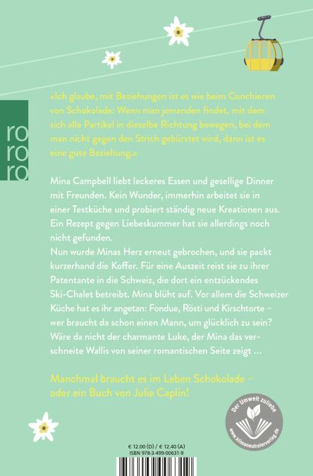 Mina Campbell liebt leckeres Essen und gesellige Dinner mit Freunden. Kein Wunder, immerhin arbeitet sie in einer Testküche und probiert ständig neue Kreationen aus. Ein Rezept gegen Liebeskummer hat sie allerdings noch nicht gefunden. Nun wurde Minas Herz erneut gebrochen, und sie packt kurzerhand die Koffer. Für eine Auszeit reist sie zu ihrer Patentante in die Schweiz, die dort ein entzückendes Ski-Chalet betreibt. Mina blüht auf. Vor allem die Schweizer Küche hat es ihr angetan: Rösti, Raclette und Rüeblitorte - wer braucht da schon einen Mann, um glücklich zu sein? Wäre da nicht der charmante Luke, der Mina das verschneite Wallis von seiner romantischen Seite zeigt ...