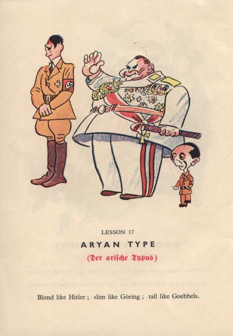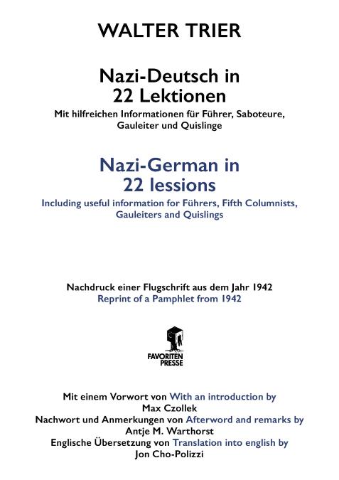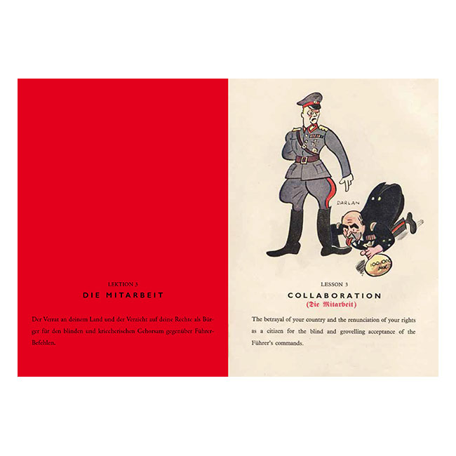 So steht es auf einem Flugblatt, das Anfang 1942 Maschinen der britischen Royal Airforce One über den von Nazi-Deutschland besetzten Gebieten abgeworfen haben. Es sollte allen, die in einer gleichgeschalteten Pressewelt lebten, eine andere Lesart oder Definition der gängigsten Nazi-Begriffe und Thesen anbieten. Für die Umsetzung dieser pädagogisch-aufklärerischen Absicht holte das britische Informationsministerium keinen Geringeren als den im Londoner Exil lebenden Illustrator Walter Trier, den bekannten Zeichner der Erich Kästner-Bände, und ließ ihn unverhohlen eindeutig und sarkastisch Bilder des "arischen Typus", gelungener "Mitarbeit" und wirkungsvoller "Schutzmaßnahmen" zeichnen. Die erklärenden Bildunterschriften lieferte der irische Journalist Frank Dowling. --- Diese Sammlung an Illustrationen mag heute skurril und komisch wirken, erschütternd ist dennoch der Bezug zur realen politischen und militärischen Situation. Wenn Wladimir Putin von "Entmilitarisierung" und "Befreiungsaktion" spricht, beruft er sich auf eine russische Propaganda-Tradition, die auch bereits für die zynische und menschenverachtende Rhetorik Joseph Goebbels' ein Vorbild war. Mit den Mitteln der Kunst Verantwortung zu übernehmen und Stellung zu beziehen ist daher wichtiger denn je. --- Nachdruck des illustrierten Original-Flugblatts mit allen "22 Lektionen" und Kommentaren. Mit einem Vorwort von Max Czollek sowie Anmerkungen der Walter Trier-Expertin Antja M. Warthorst. --- Zweisprachige Ausgabe