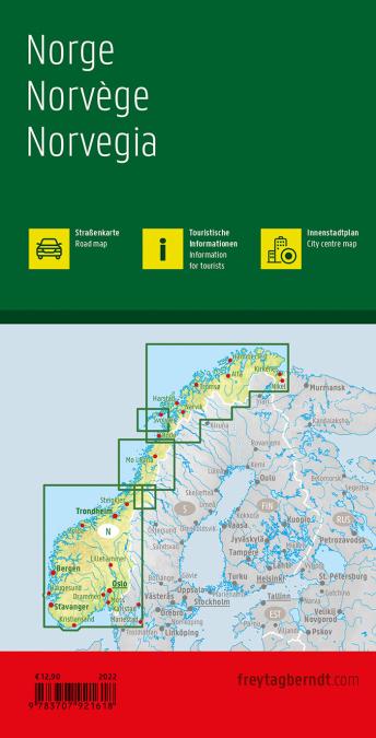 Neben der übersichtlichen Gestaltung verfügt die Straßenkarte Norwegen 1:600.000 über zahlreiche Zusatzinformationen wie z.B. Straßenbeschaffenheit, Sehenswürdigkeiten, Campingplätze und diverse Innenstadtpläne. Mit dem umfangreichen Ortsregister gelingt zudem eine rasche Orientierung. Citypläne von Bergen, Hammerfest, Oslo, Narvik, Stavanger und Trondheim; Ortsregister mit Postleitzahlen, Entfernungen in km; freytag & berndt Autokarten sind für viele Länder und Regionen weltweit erhältlich.