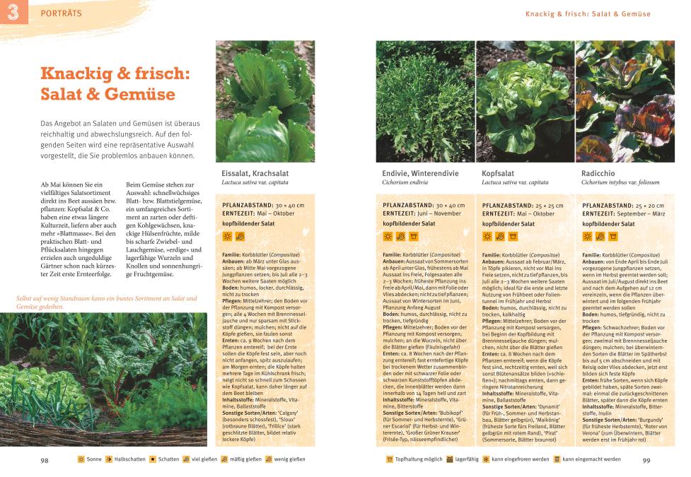 Anschaulicher geht¿s nicht: Praxis-Videos und nützliche Tipps über die kostenlose GU Garten & Natur Plus-App machen diesen Ratgeber zu einem Rundum-sorglos-Paket. In jedem noch so kleinen Garten, ja selbst auf Terrasse und Balkon, findet sich ein geeignetes Plätzchen für köstliche Salat-, Gemüse- und Obstsorten. Jedes Jahr kommen neue moderne Sorten auf den Markt: klein- und schwachwüchsig für kleine Gärten, noch ertragreicher oder noch widerstandsfähiger gegen Krankheiten. Dieser Ratgeber zeigt Ihnen, wie Sie Ihre Pflanzen richtig pflegen, um das ganze Jahr über gesundes Obst und Gemüse erntefrisch auf den Tisch zu bekommen: vom richtigen Vorziehen und Einpflanzen über gezieltes Düngen und Gießen bis hin zum fachgerechten Schneiden, Vermehren und Überwintern. Selbst gezogen und frisch geerntet schmeckt es einfach am besten! Im Porträtteil mit insgesamt über 60 Porträts finden Sie einen repräsentativen Querschnitt knackiger Salate, vitaminreicher Gemüse und süßer Früchte.