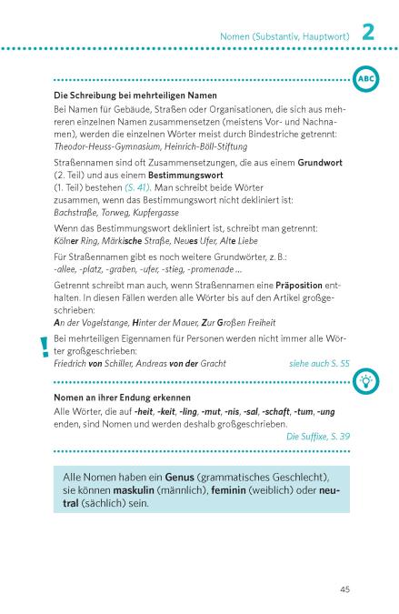 Zahlreiche Tipps helfen Ihnen bei der Groß- und Klein-, Getrennt- und Zusammenschreibung sowie bei häufigen Stolperfallen.