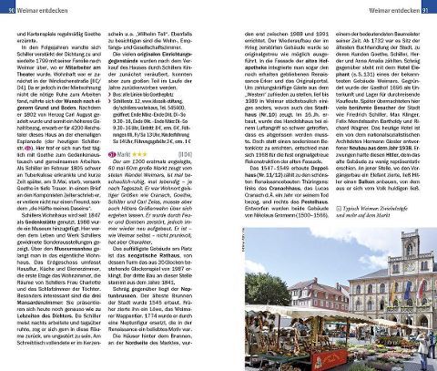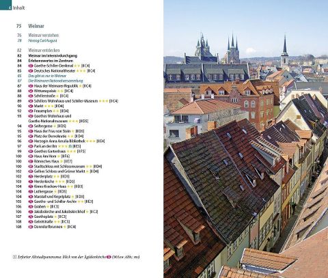 Dieser aktuelle Stadtführer ist der ideale Begleiter, um alle Seiten der beiden thüringischen Städte Erfurt und Weimar selbstständig zu entdecken:- Die wichtigsten Sehenswürdigkeiten und Museen sowie weniger bekannte Attraktionen und Viertel ausführlich vorgestellt und bewertet- Faszinierende Architektur: mittelalterliche Kleinode, Renaissance-Bauten, moderne Museen- Abwechslungsreiche Stadtspaziergänge- Erlebnisvorschläge für einen Kurztrip nach Erfurt und Weimar- Ausflüge zu den Schlössern Belvedere und Tiefurt sowie zur Gedenkstätte Buchenwald- Shoppingtipps vom Bauhaus-Shop bis zum kulinarischen Souvenir- Die besten Lokale der Städte und allerlei Wissenswertes über die Thüringer Küche- Tipps für die Abend- und Nachtgestaltung: Bars und Klubs, Theater und Kabarett- Erfurter Straßennamen: lebendige Geschichte- Ausgewählte Unterkünfte von preiswert bis ausgefallen- Alle praktischen Infos zu Anreise, Preisen, Stadtverkehr, Touren, Events, Hilfe im Notfall ...- Hintergrundartikel mit Tiefgang: Geschichte, Mentalität der Bewohner, Leben in der Stadt ...- Faltplan zum Herausnehmen