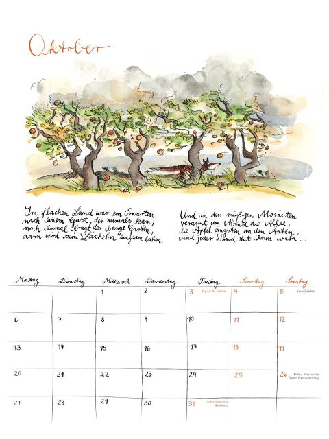 Hier trifft die Poesie Rainer Maria Rilkes auf die Kunst von Melanie Garanin. Dieser zauberhaft illustrierte Wandkalender ist eine Hommage an die zeitlose Schönheit von Rilkes Worten. Erfreuen Sie sich Monat für Monat an den tiefgründigen Versen und den zauberhaften Illustrationen von Melanie Garanin, die Rilkes Worte auf einzigartige Weise zum Leben erwecken. Dieser Kalender ist nicht nur ein praktischer Helfer im Alltag, sondern auch eine Quelle der Inspiration. Mit Rilkes zeitloser Weisheit, Garanins kunstvollen Interpretationen und mit Platz für eigene Notizen bietet dieser Kalender alles, was man braucht. Der perfekte Begleiter durch das ganze Jahr!