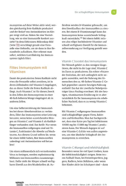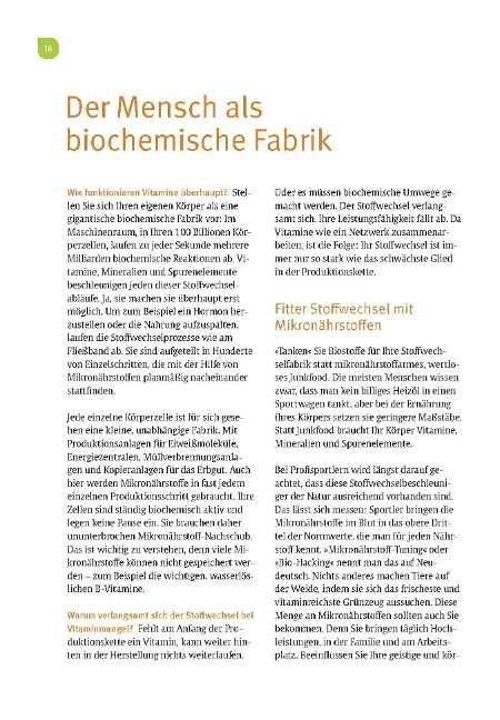 - Fit statt dauermüde: mehr Energie, stressresistenter und stabile Psyche - Neue Forschung: langsamer altern und Risiken senken - Seltener krank: das Immunsystem scharf stellen Kämen Sie auf die Idee, Heizöl in einen Ferrari zu tanken? Wohl kaum! Für uns selbst tanken wir dagegen viel zu oft hochverarbeite Lebensmittel und finden es normal, dauermüde, gestresst und infektanfällig zu sein. Studien beweisen: Eine bessere Vitaminzufuhr macht einen erheblichen Unterschied. Viele sind sich der Risiken einer schlechten Vitaminversorgung nicht bewusst: Wir altern schneller durch mangelnden Zellschutz und schlechtere Reparaturvorgänge. Damit steigt das Risiko für Schlaganfälle, Demenz, Depressionen, Krebs und Osteoporose erheblich. Versäumen wir die Chance, langfristig Risiken zu minimieren? 75 Länder weltweit ergänzen bestimmte Vitamine per Gesetz. Deutschland gehört nicht dazu. Ein gravierender Fehler, wie die Forschung zeigt.