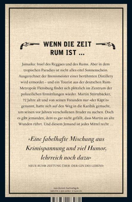 Martin Störtebäcker, 72 Jahre alt und von seinen Freunden liebevoll »der Käpt’n« genannt, lebt friedlich in der deutschen Rum-Metropole Flensburg, wo sich sein Faible für den köstlichen Zuckerrohrbrand her-vorragend pflegen lässt. Aber dann segnet sein bester Freund Lasse das Zeitliche – und gibt dem Käpt’n aus dem Grab einen letzten Auftrag mit: Er soll zur legendären Rum-Insel Jamaika reisen und sich endlich auf die Suche nach seinem dort verschollenen Bruder begeben. In der Karibik angekommen freundet sich der Käpt’n schnell mit einer abenteuerlustigen Taxifahrerin an, die ihn bei seiner Suche unterstützt. Doch schon bei der Besichtigung der ersten Rum-Distillery stellen sie fest: Etwas stimmt ganz und gar nicht in dem tropischen Paradies. Der Brennmeister der Distillery wird auf brutale Weise ermordet aufgefunden – und es wird nicht der letzte Mord gewesen sein. Ein rasantes Katz-und-Maus-Spiel beginnt …