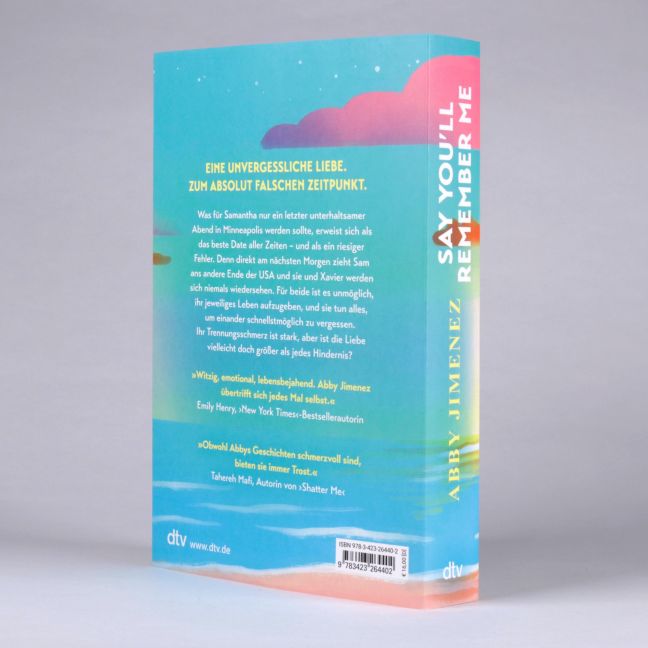 - Grumpy meets Sunshine Große Begeisterung für ¿Say You'll Remember Me¿: 'Niemand schreibt witzige, emotionale, lebensbejahende Liebesgeschichten so wie Abby Jimenez. Sie übertrifft sich jedes Mal selbst.' - Emily Henry, ¿New York Times¿-Bestsellerautorin '¿Say You'll Remember Me¿ ist lustig und ergreifend, herzzerreißend und macht glücklich. Mit einem Wort: Es ist perfekt.' - Christina Lauren, ¿New York Times¿-Bestsellerautorinnen Weitere Bücher von Abby Jimenez bei dtv - alle sind unabhängig voneinander lesbar: ¿Part of Your World¿ ¿Yours Truly¿ ¿Just for the Summer¿ ¿The Friend Zone¿ (bereits erschienen unter dem Titel ¿Wenn aus Funken Flammen werden¿) ¿The Happy Ever After Playlist¿ (bereits erschienen unter dem Titel ¿Wenn in mir die Glut entflammt¿) ¿Life's Too Short¿ ¿Situationship¿ - Kurzgeschichte zum Kennenlernen von Maddie und Doug aus ¿Just for the Summer¿ ¿Der schlechteste Wingman aller Zeiten¿ - Kurzgeschichte in der Sammlung ¿The Unexpected Meet Cute¿