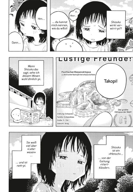 Das zweibändige Ausnahmewerk erreichte in Japan eine riesige Aufmerksamkeit und gehört zu den erfolgreichsten Titeln der letzten Jahre. Band 1 enthält einen süßen Aufsteller als Extra - nur in der 1. Auflage! Shizukas Leben ist hart. Ihre Eltern haben sich vor langer Zeit getrennt und in der Schule wird sie regelmäßig auf grausamste Art und Weise von ihrer Mitschülerin Marina gequält. Ihr Hund Chappy ist Shizukas einziger Verbündeter und Freund. Eines Tages begegnet sie einem ganz besonderen Gast: Takopi, ein kleines außerirdisches Wesen. Takopi ist auf die Erde gekommen, um Glück zu verbreiten. Shizuka und Takopi freunden sich an... doch dann geschieht etwas Schreckliches und alles verändert sich. Die Geschichte behandelt viele triggernde Themen wie Missbrauch, selbstverletzendes Verhalten und Suizidalität.