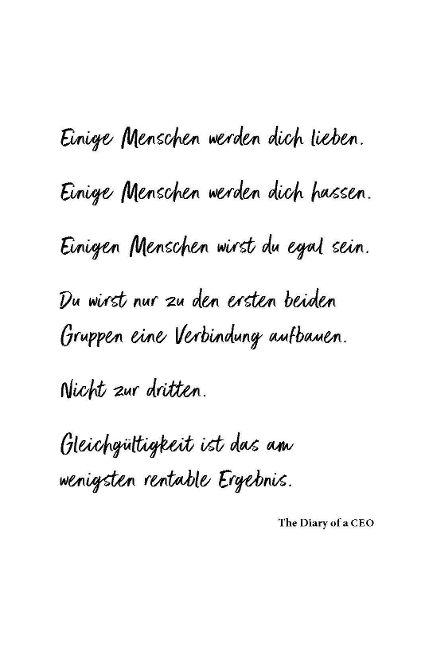 In diesem Buch geht es nicht um Strategie. Strategien ändern sich wie das Wetter. In diesem Buch geht es um etwas viel Dauerhafteres: um die 33 fundamentalen Gesetze des Lebens und der Arbeit, die auch in 100 Jahren noch gültig sein werden. Die Gesetze, die darüber entscheiden, ob Sie große Dinge verwirklichen und selbst zu einer großartigen Persönlichkeit werden. Ganz egal, in welcher Branche Sie sind oder in welcher Position. Die 33 Gesetze beruhen auf Erkenntnissen aus der Psychologie, den Naturwissenschaften und jahrhundertelanger Forschung. Sie wurden validiert durch Umfragen unter Zehntausenden Menschen aus der ganzen Welt, jeder Altersklasse und aus allen möglichen Berufszweigen. Und das Schönste ist: Einmal verstanden, sind sie ganz einfach umzusetzen. Sind Sie bereit, Ihr Leben zu einem großartigen zu machen?