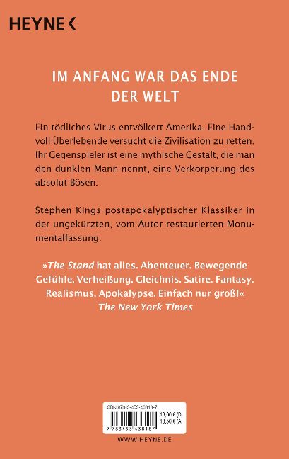 Stephen King, 1947 in Portland, Maine, geboren, ist einer der erfolgreichsten amerikanischen Schriftsteller. Bislang haben sich seine Bücher weltweit über 400 Millionen Mal in mehr als 50 Sprachen verkauft. Für sein Werk bekam er zahlreiche Preise, darunter 2003 den Sonderpreis der National Book Foundation für sein Lebenswerk und 2015 mit dem Edgar Allan Poe Award den bedeutendsten kriminalliterarischen Preis für Mr. Mercedes. 2015 ehrte Präsident Barack Obama ihn zudem mit der National Medal of Arts. 2018 erhielt er den PEN America Literary Service Award für sein Wirken, gegen jedwede Art von Unterdrückung aufzubegehren und die hohen Werte der Humanität zu verteidigen.Seine Werke erscheinen im Heyne-Verlag.
