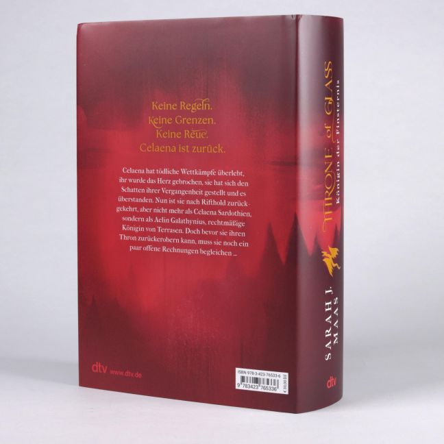 und geprägtem Bezug. Celaena hat tödliche Wettkämpfe überlebt, ihr wurde das Herz gebrochen, sie hat sich den Schatten ihrer Vergangenheit gestellt und es überstanden. Jetzt kehrt sie zurück nach Adarlan. Aber nicht mehr als Celaena Sardothien, sondern als Aelin Galathynius, Königin von Terrasen. Doch bevor sie ihren Thron besteigen kann, muss sie noch offene Rechnungen begleichen. Da ist zum einen ihr alter Meister, der sie verraten und dem Tod überlassen hat. Und der König von Adarlan, der in seinem grenzenlosen Machthunger die Magie verbannt, ihre Eltern getötet und den ganzen Kontinent unterworfen hat. Eine Aufgabe würdig einer Kämpferin, würdig einer dunklen Königin ... Alle 'Throne of Glass'-Bände:
